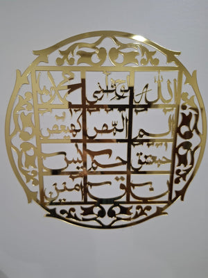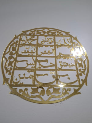 This elegant Islamic Calligraphy Wall Decor, crafted from superior quality acrylic, offers both durability and sophistication for any room. Ideal for Ramadan decor, Eid/Ramadan gift, or as a thoughtful Muslim gift, it enhances home decor with its beautiful Islamic design.